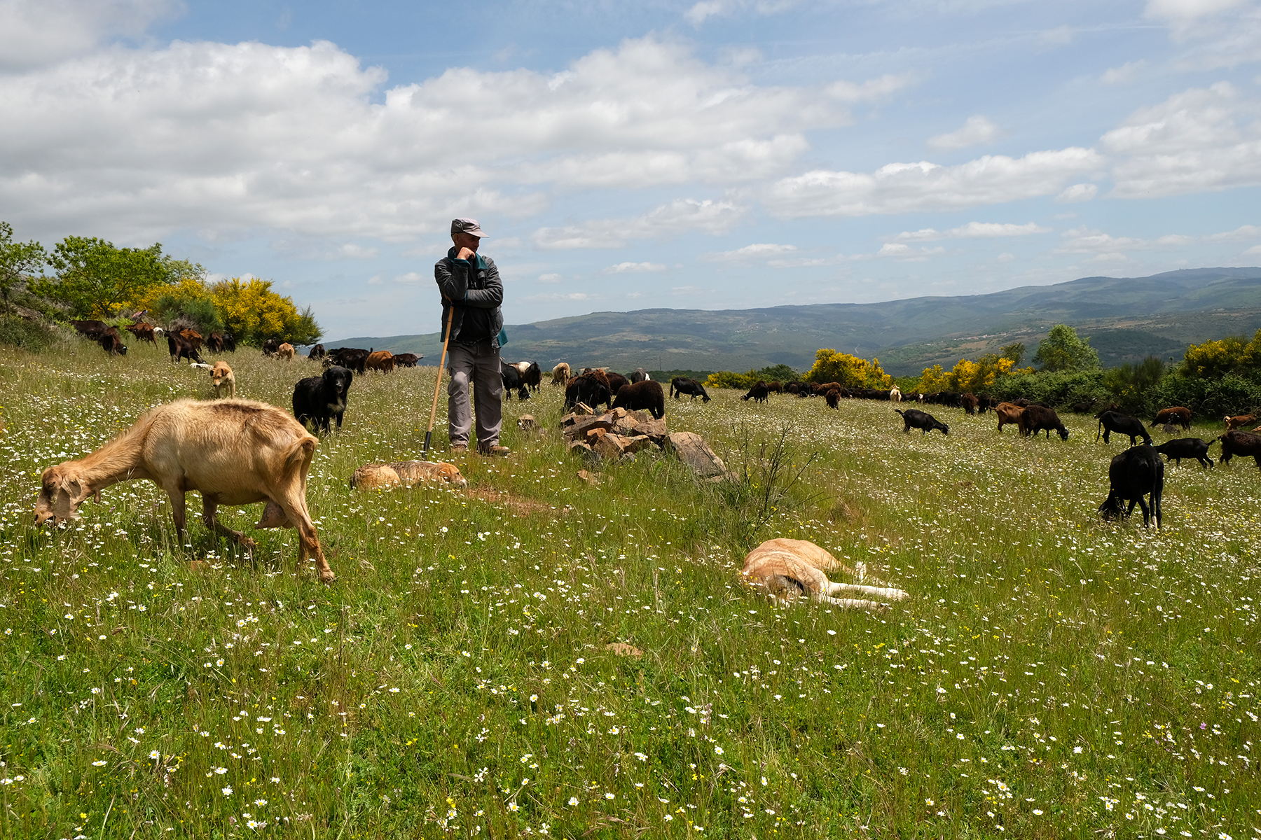 De manhã, trato dos cabritos. Dou-lhes de comer e de beber. Depois, pego na merenda e saio com o rebanho. Todos os dias. À semana, ao fim-de-semana e aos feriados. Só no Domingo de Páscoa é que venho almoçar a casa. Nos outros dias todos, levo merenda e almoço no monte. Ao fim do dia, quando regresso ao estábulo com o rebanho, tenho sempre quem me ajude. A minha mulher trabalha num restaurante, mas com a pandemia reduziu muito as horas de trabalho e, por isso, à noite dá-me uma ajuda a ordenhar as cabras e a fazer o queijo. Se não for a minha mulher a ajudar-me com o campo e os animais, é a minha filha, o meu genro, o meu filho ou os meus netos.